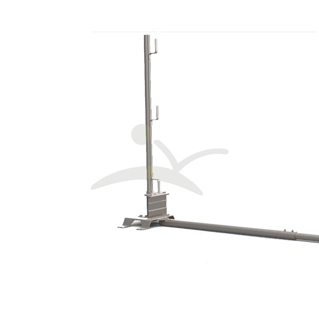 Diseñado para la instalación de protecciones colectivas sin necesidad de perforar la estructura, permite delimitar bordes de forjados y superficies en trabajos en altura, garantizando estabilidad, seguridad y cumplimiento normativo mediante el uso de contrapesos. Ofrece una solución robusta, versátil y de fácil instalación para entornos de obra. Existen dos configuraciones posibles: