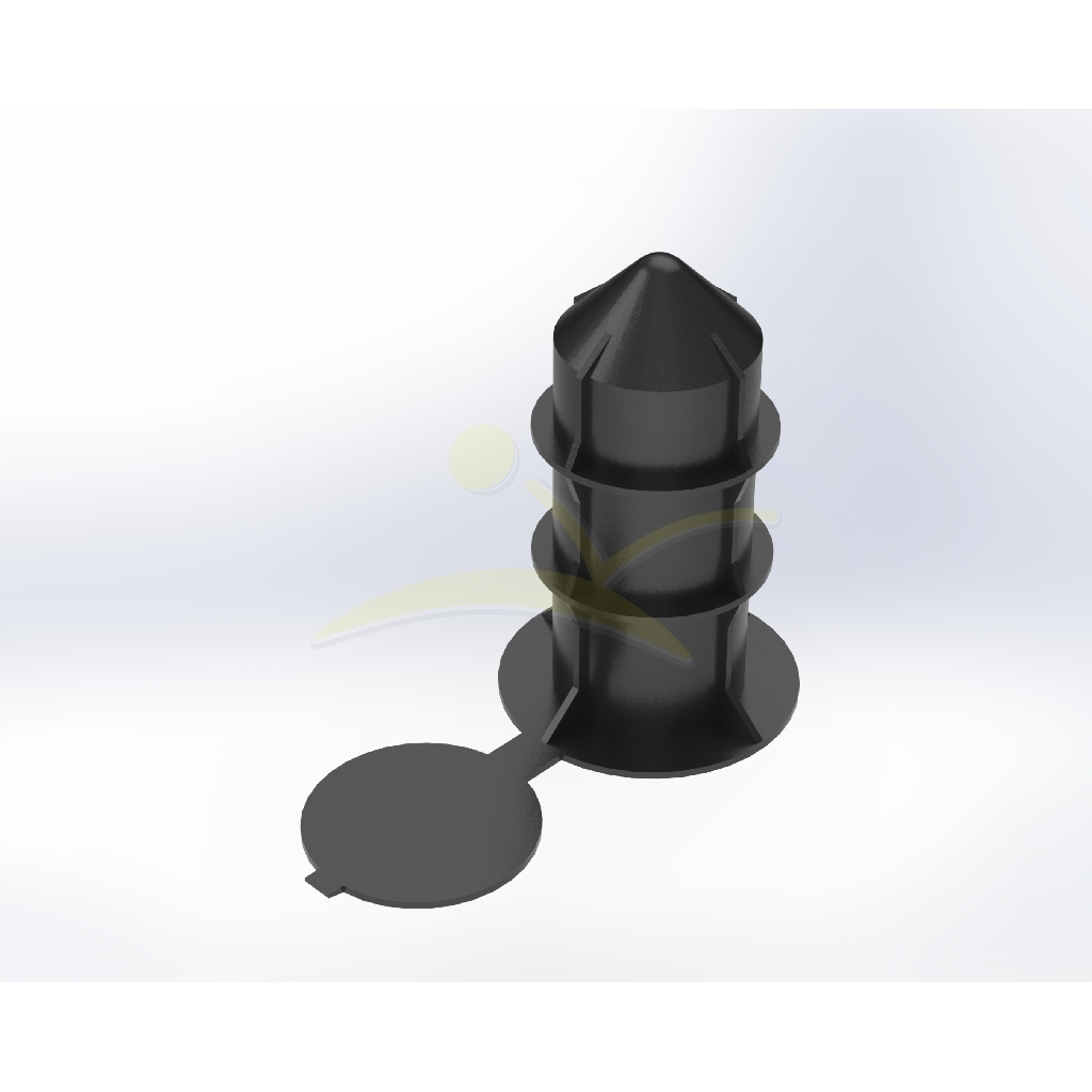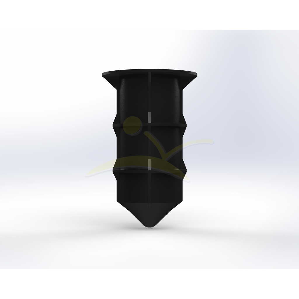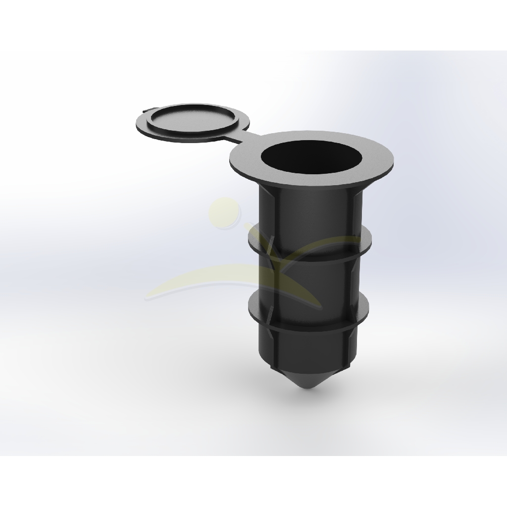Elemento plástico de empotramiento diseñado para el alojamiento de balaustres de seguridad en superficies de hormigón. Se instala durante el vertido, quedando integrado de forma permanente en la estructura. Incorpora tapa de protección abatible que evita la entrada de residuos antes de la colocación del poste, garantizando una instalación limpia, segura y precisa en sistemas de protección colectiva.
