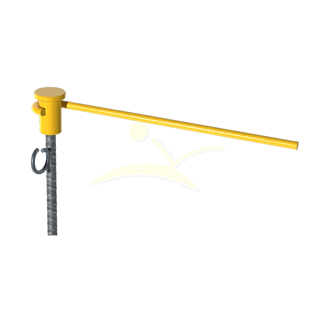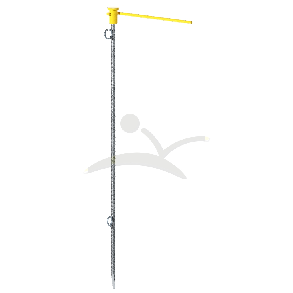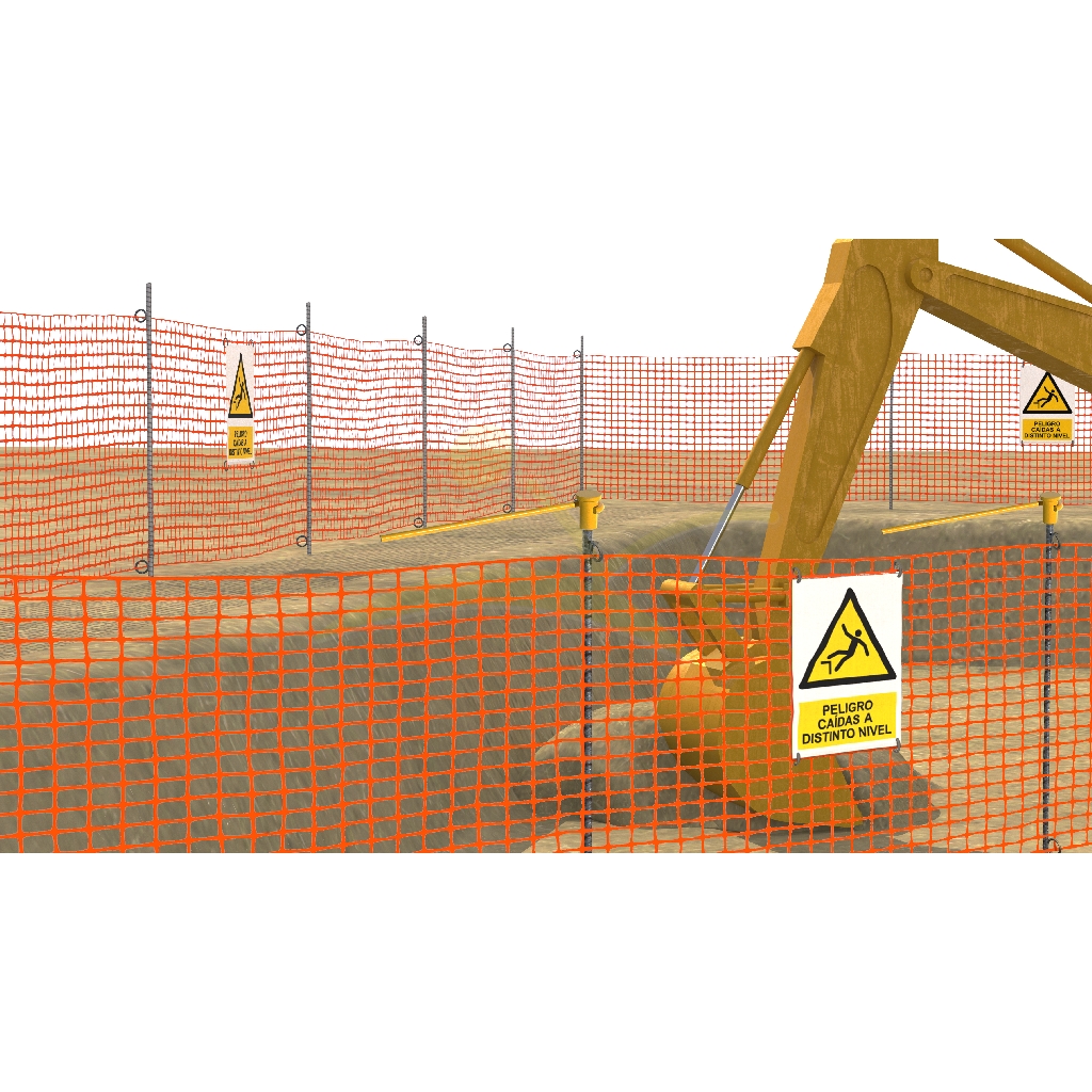 Destinado a instalarse como señalización de borde de taludes o desniveles junto con malla de señalización tipo “stopper” que irá sujeta a los dos ganchos tipo “rabo de cerdo”